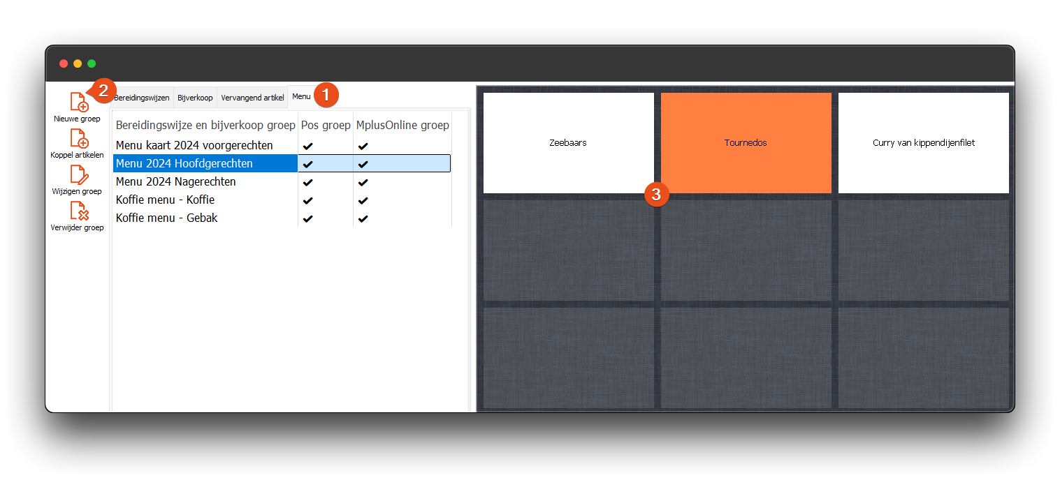 Je maakt in dit overzicht de verschillende groepen aan die je in een menu wilt hebben.
