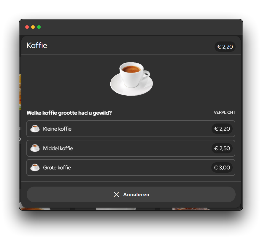 Voorbeeld: Je slaat een koffie aan en het systeem vraagt of je ook gebak wilt. Dit gebak komt dan als losse regel op de kassabon