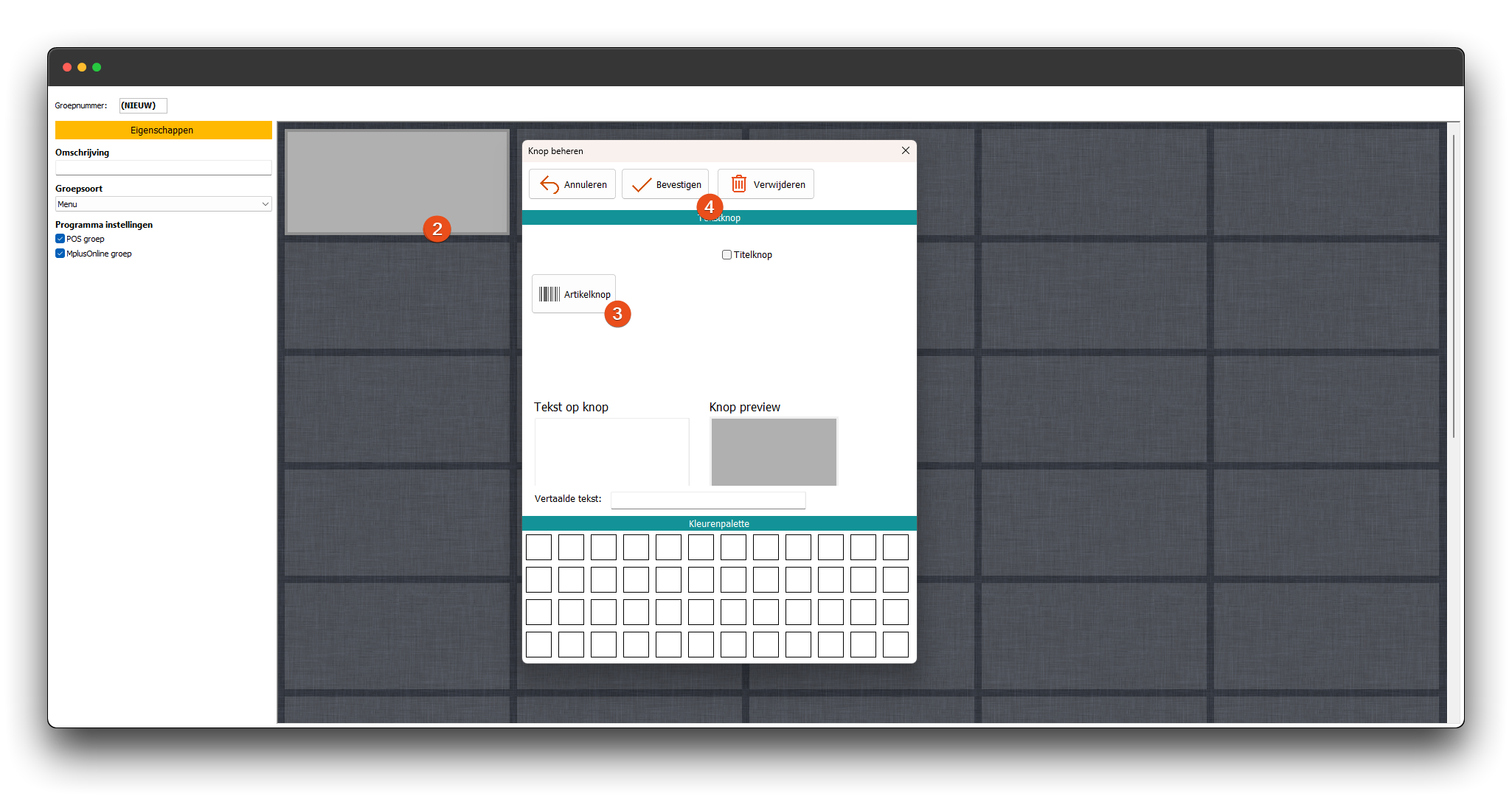 - Klik op een leeg vakje en dan Artikelknop (3)