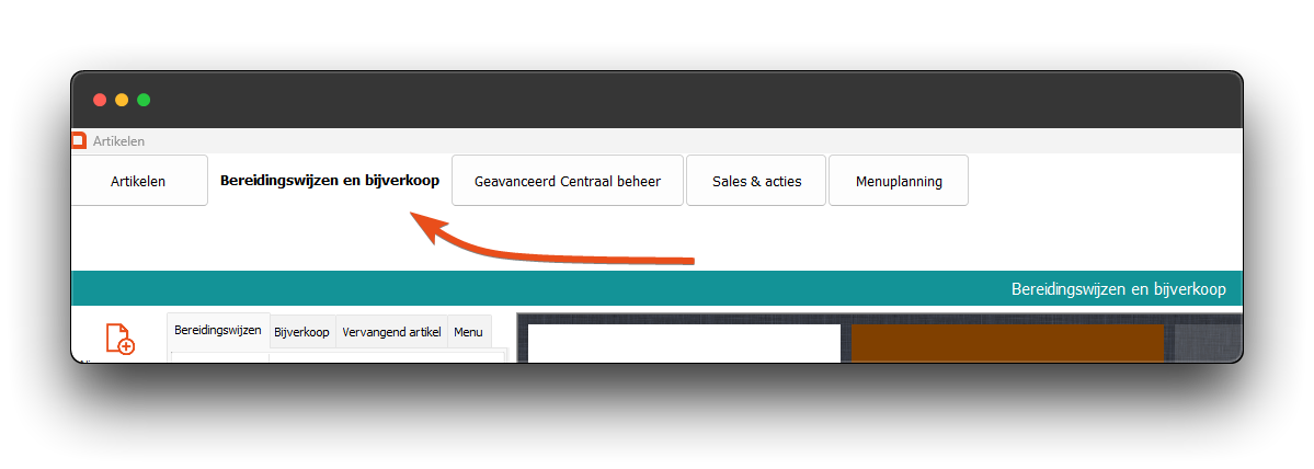 En klik vervolgens boven in op Bereidingswijzen en bijverkoop