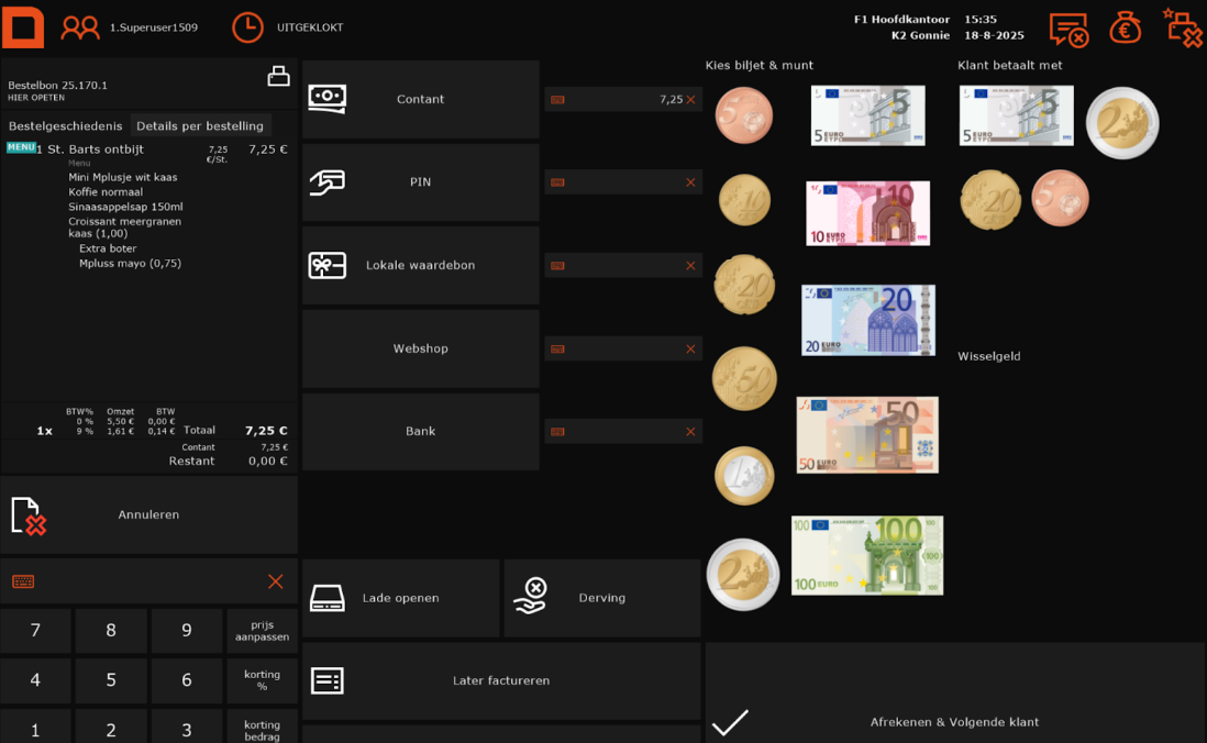 Stel je bon samen en kies Afrekenen. Het afrekendialoog verschijnt automatisch.